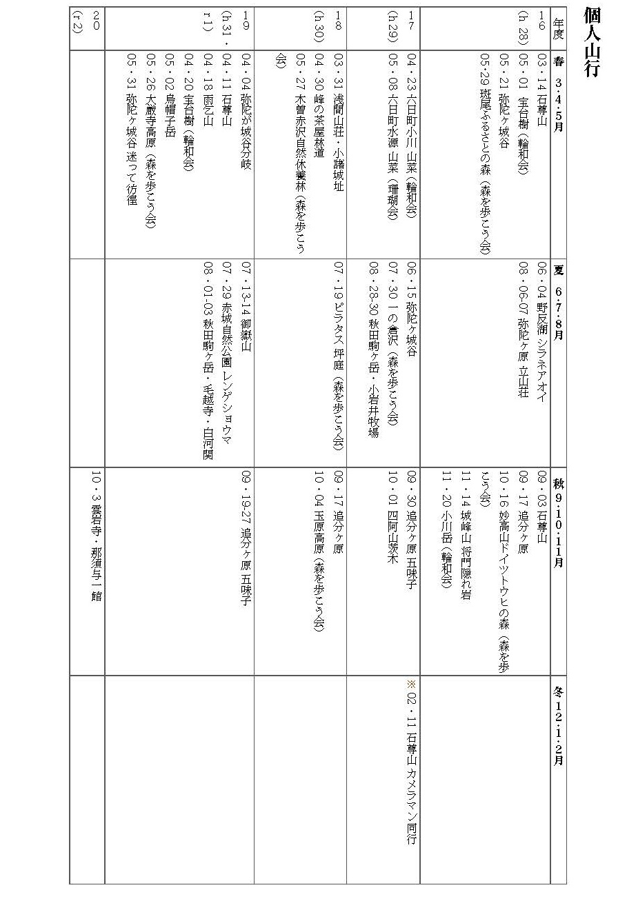 この山行記録は、1967年度より2020年度までの私の山行記録です。